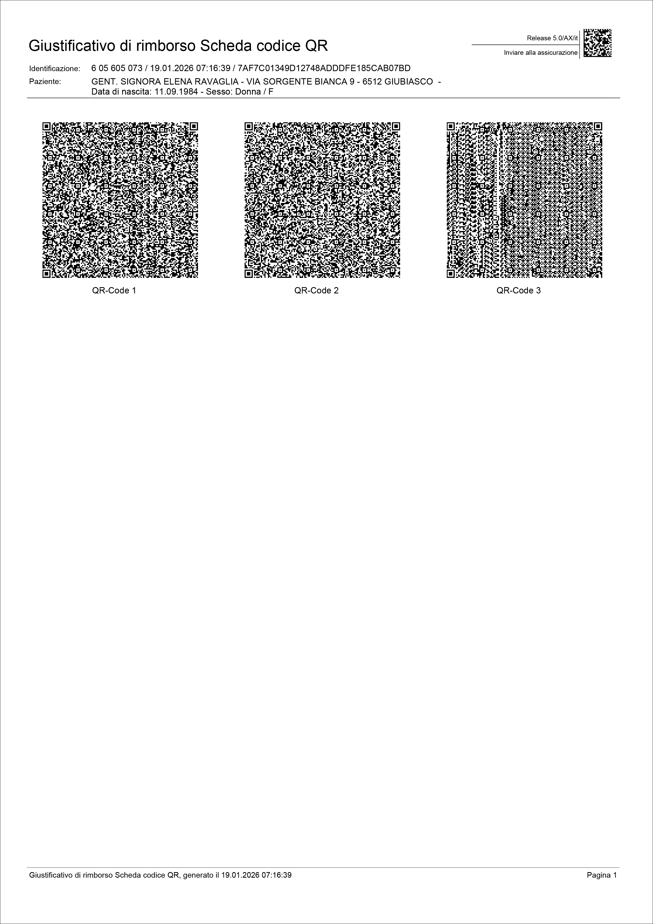 Importante: se lei paga la fattura personalmente e la invia poi per ottenere il rimborso (terzo garante), deve assolutamente allegare il foglio con i codici QR.